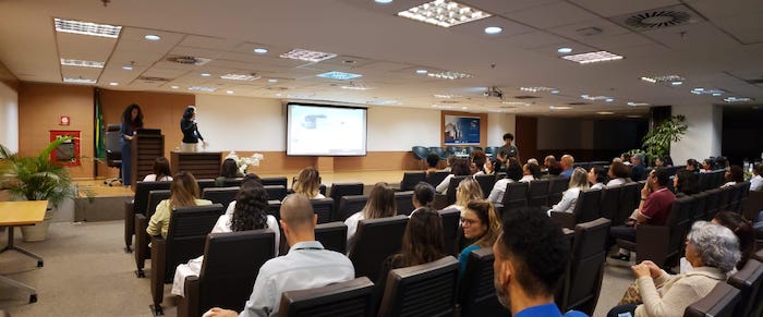 No encontro, a chefe-substituta da Coordenação de Administração de Pessoas (COAPE), Andrea Andrade, e a chefe-substituta da Área de Política Nacional de Humanização (APNH), Michelly Coutinho, apresentaram o perfil dos colaboradores do Instituto e divulgaram as ações de diversidade já realizadas pelo INTO.
