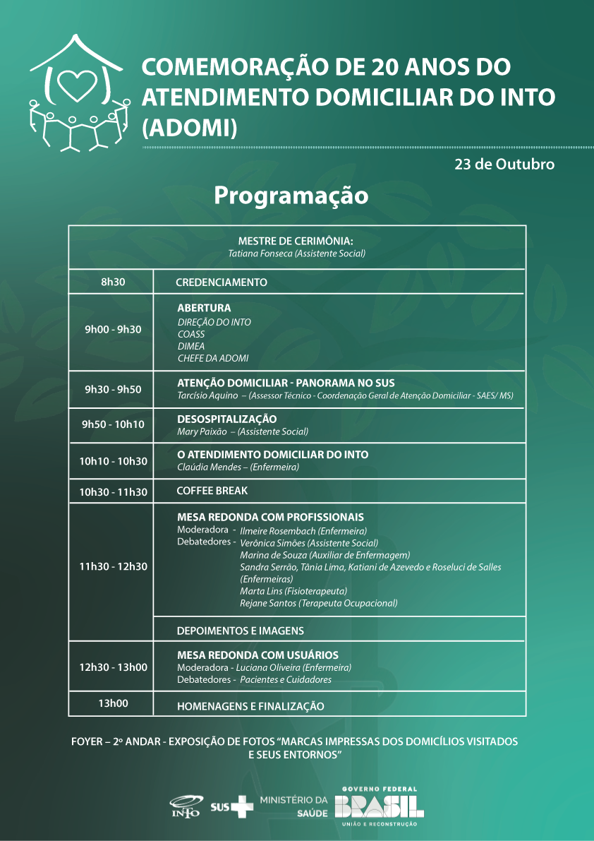 Comemoração de 20 Anos do Atendimento Domiciliar do INTO